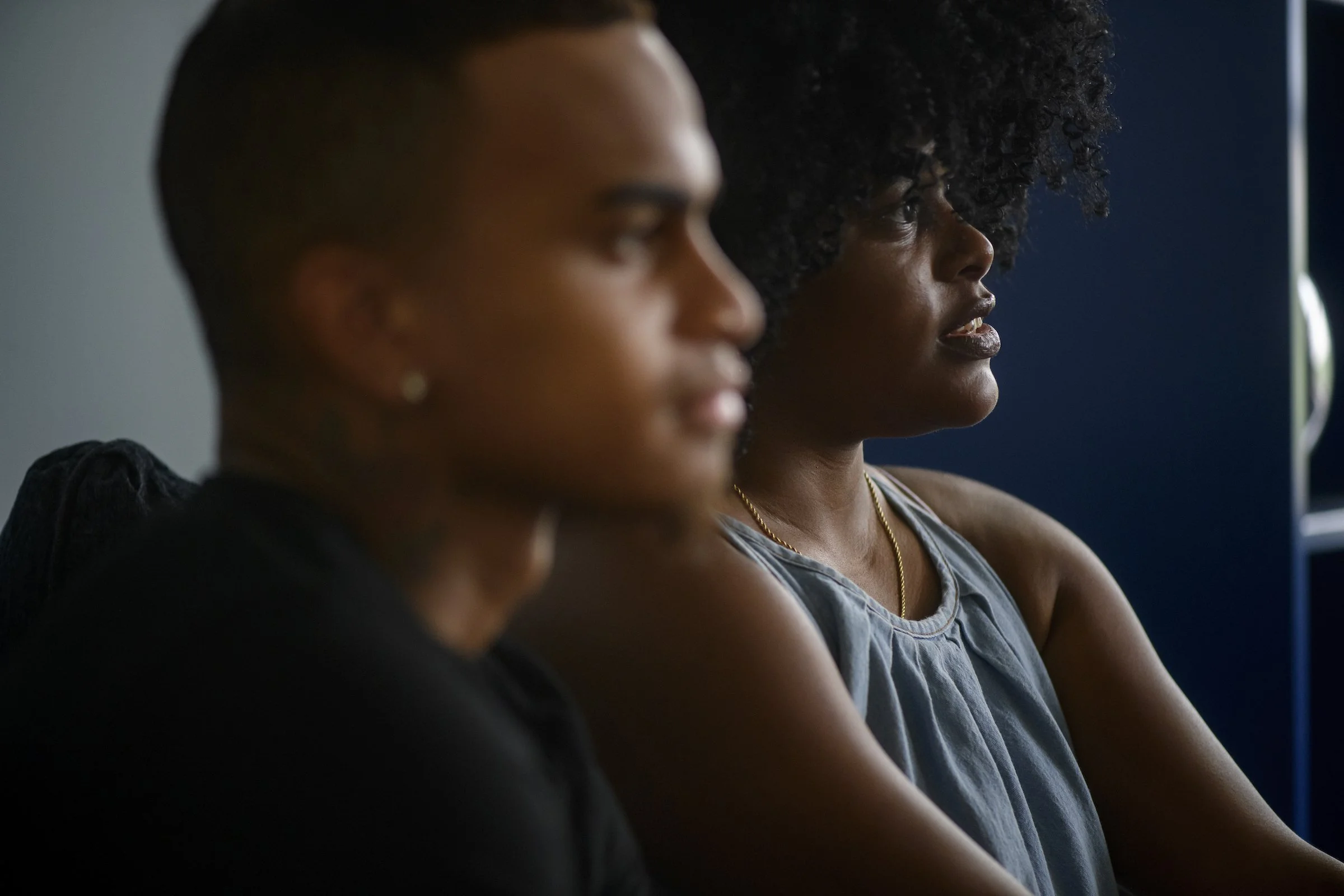 Jeremy Lumpkins and Constance Parrish meet with Health Education Intake and Outreach Coordinator Chastity Everett at the Healthy Start offices in Pittsburgh.